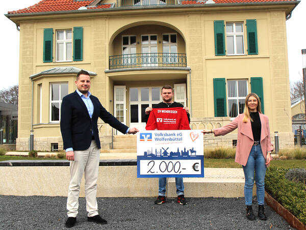 Phil Ehlers, Regionalmarktleiter in Wolfenbüttel, überreicht stellvertretend für die Volksbank eG einen Scheck in Höhe von 2.000,00 Euro.