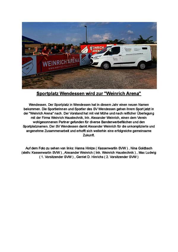 Gerriet D. Hinrichs berichtete über die durchgeführte Sozialversicherungsprüfung beim SV Wendessen. Die Deutsche Rentenversicherung prüft dabei die Korrektheit der abgeführten Beiträge. Hinrichs dankte unter großem Beifall des Plenums Krüger für das hervorragend gute Ergebnis. Sein weiterer Dank galt auch dem Kreissportbund, der Sportabteilung sowie dem Grünamt der Stadt Wolfenbüttel für das angenehme und gedeihliche gemeinsame Schaffen.