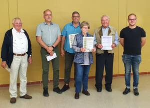 Ehrung von langjährigen Mitgliedern durch den 1. Vorsitzenden Max Ludwig (von links nach rechts): Manfred Busch, Klaus-Dieter Otto, Thomas Rettberg, Annegret Zippel, Siegfried Schweitzer, Max Ludwig